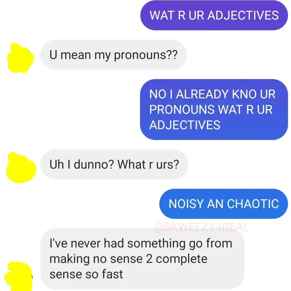 - "You do not dislike mayonnaise- you like aioli and those two are the same fucking thing, one just sounds better. The bread you're eating with savory sandwiches is too sweet and your parents are not bothered by it, but you are. Switch to sourdough and put olive oil on it."